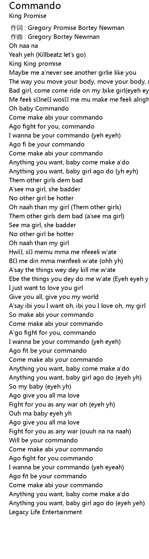 | [00:38.900] | Come make abi your commando |