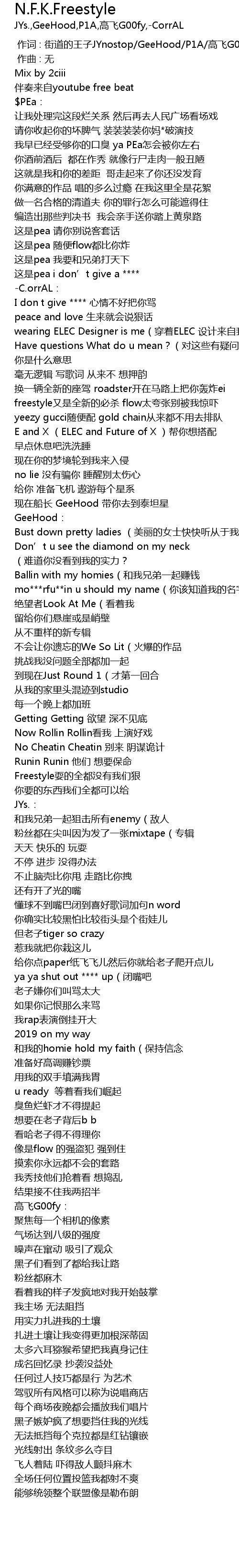 | [00:00.000] | 作词 : 街道的王子JYnostop/GeeHood/P1A/高飞G00fy/-CorrAL |
