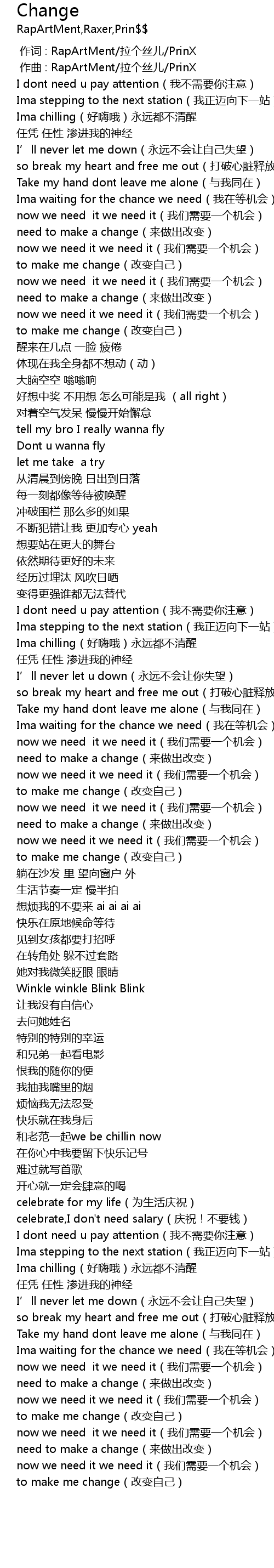 | [01:40.008] | need to make a change lái zuò chū gǎi biàn |