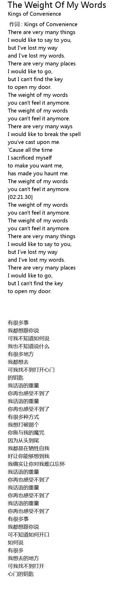 | [02:39.20] | The weight of my words |