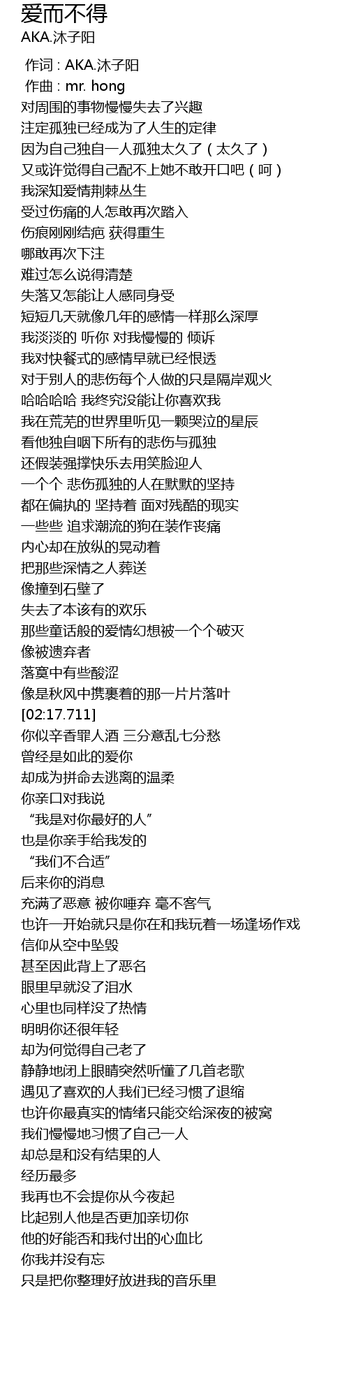| [00:00.000] | 作词 : AKA.沐子阳 |