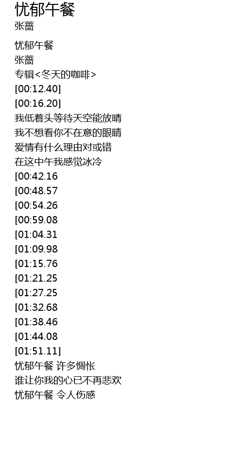 | [02:35.32][01:04.31] | 忧郁午餐 许多惆怅 |