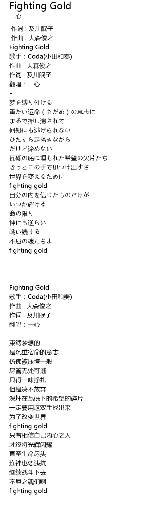 | [00:02.694] | gē shǒu: Coda xiǎo tián hé zòu |