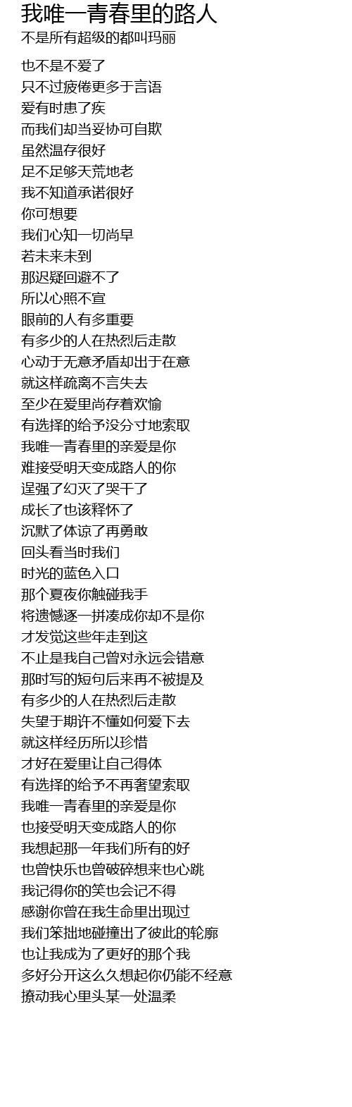 | Song | 我唯一青春里的路人 |