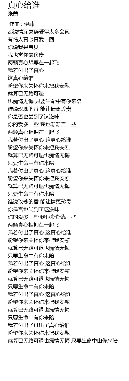 | [01:40.490] | wǒ ruò fù chū le zhēn xīn zhè zhēn xīn gěi shuí |