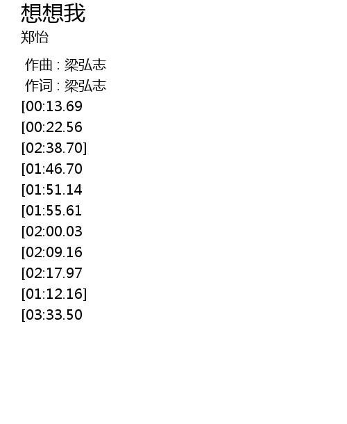 | [03:46.86][03:33.50][03:20.20][02:26.98] | 想想我 想想我 想想我 |