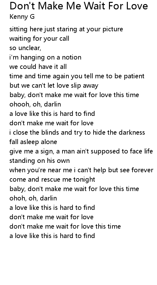 don't make me wait for love |