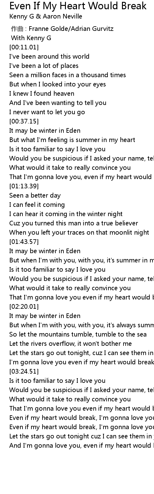 | [04:07.87] | And I' m gonna love you, even if my heart would break |