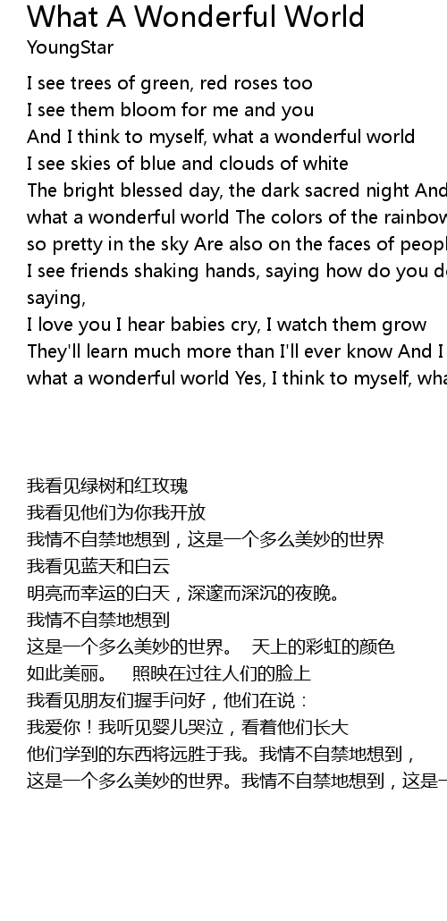 [02:25.00] what a wonderful world Yes, I think to myself, what a wonderful world