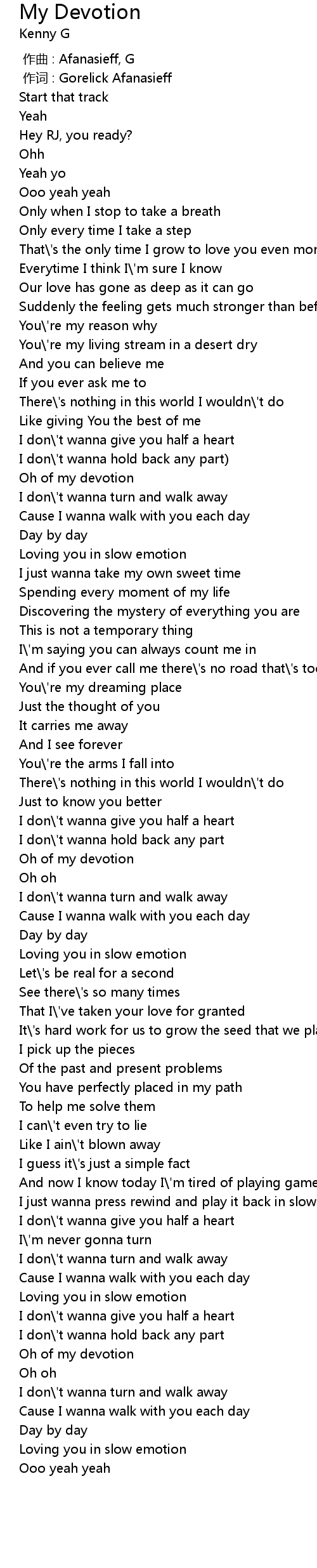 | [03:37.97] | Cause I wanna walk with you each day |