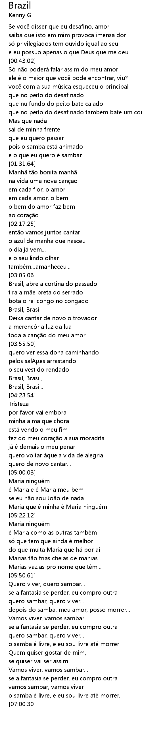 | [03:18.47] | Brasil, abre a cortina do passado |