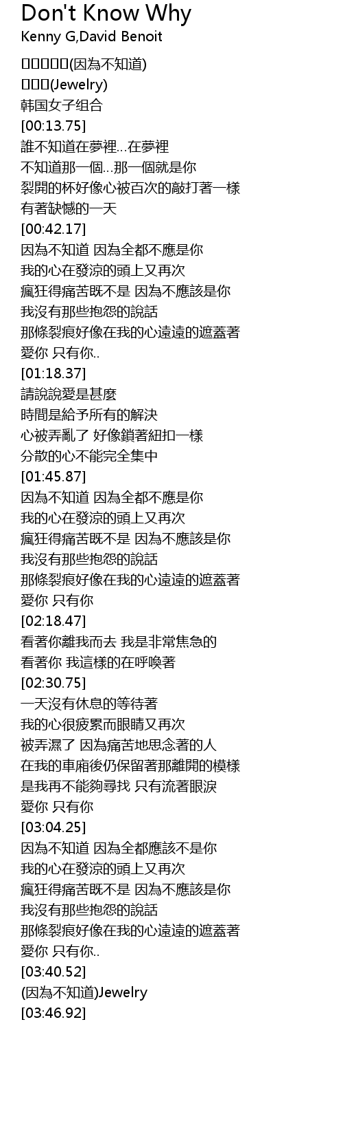 | [03:44.67] | yīn wèi bù zhī dào Jewelry |