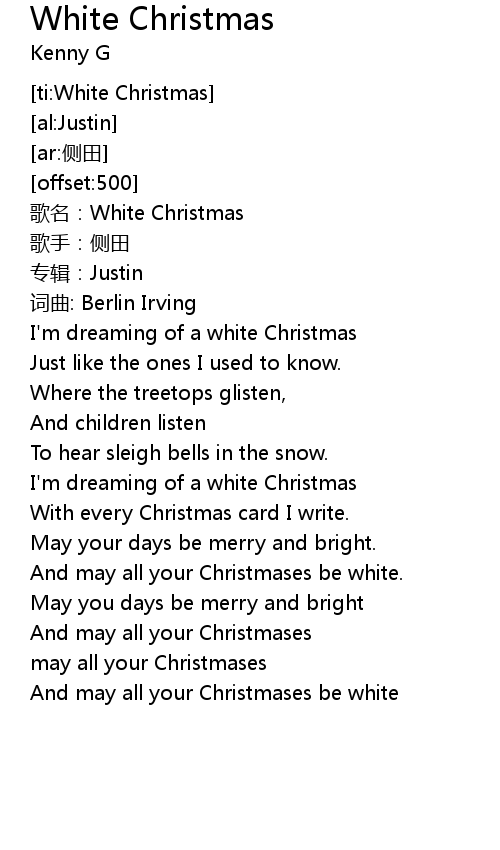 | [01:13.450] | I' m dreaming of a white Christmas |