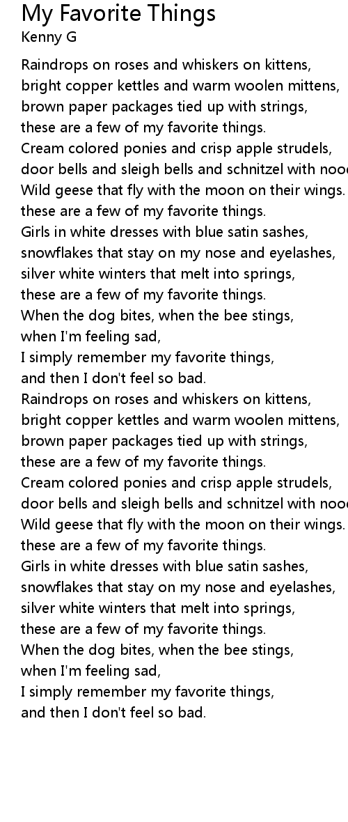 [00:00.00] Raindrops on roses and whiskers on kittens,