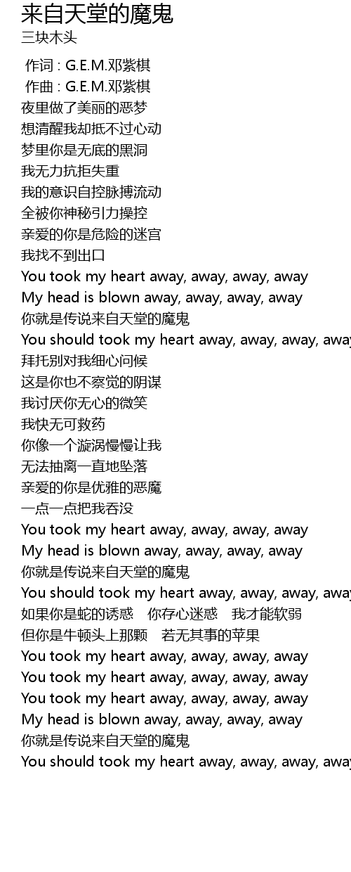 | [00:01.000] | 作曲 : G.E.M.邓紫棋 |