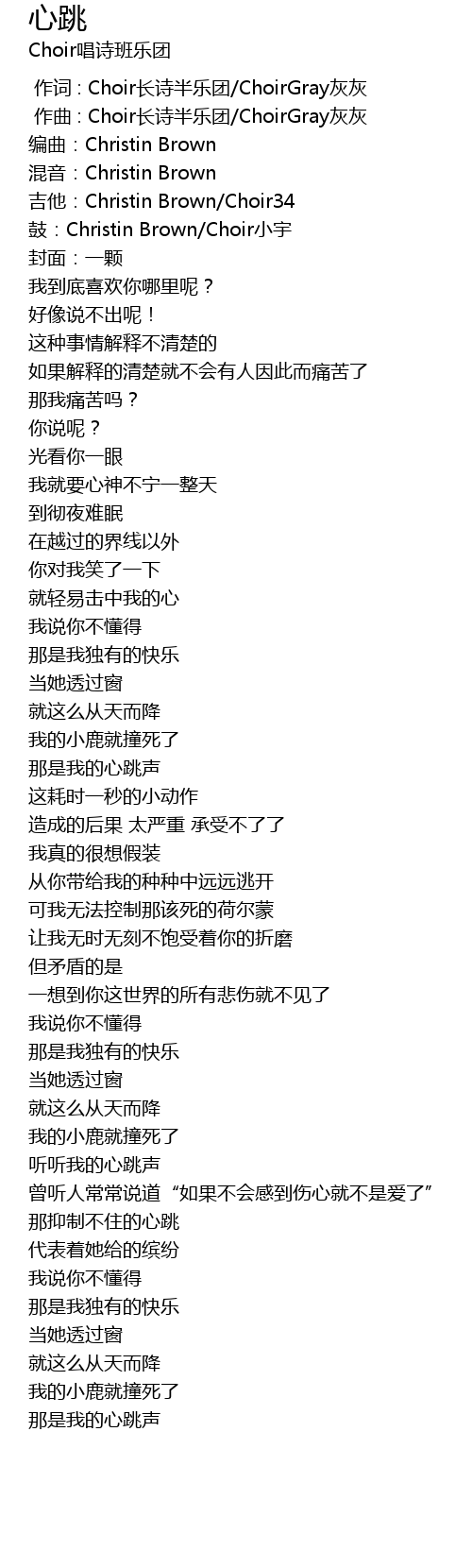 | [00:10.463] | 鼓:Christin Brown/Choir小宇 |