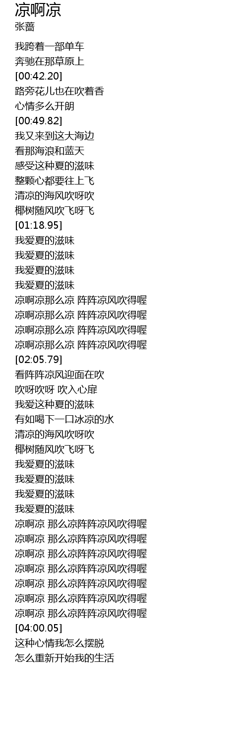 | [01:43.19] | liáng a liáng nà me liáng zhèn zhèn liáng fēng chuī dé ō |
