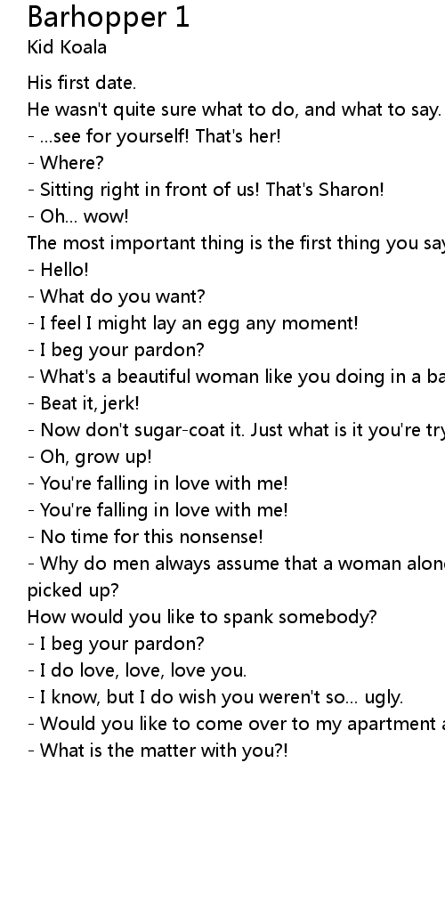 - What's a beautiful woman like you doing in a bar like this? |