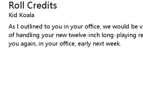 | As I outlined to you in your office, we would be very happy to have the chance of handling your new twelve-inch long-playing records, and I would like to see you again, in your office, early next week. |