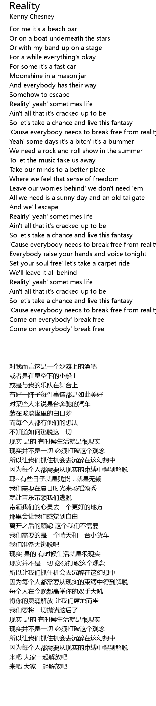 'Cause everybody needs to break free from reality |
