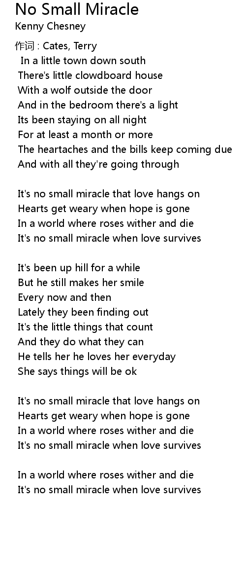 | It' s no small miracle that love hangs on | |