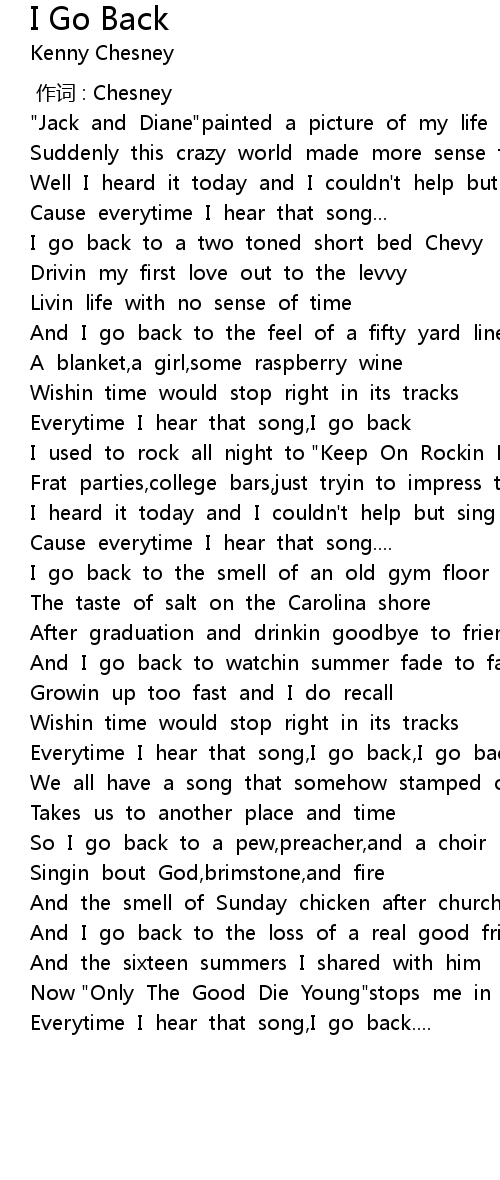 | [02:03.122] | Everytime I hear that song,I go back,I go back |