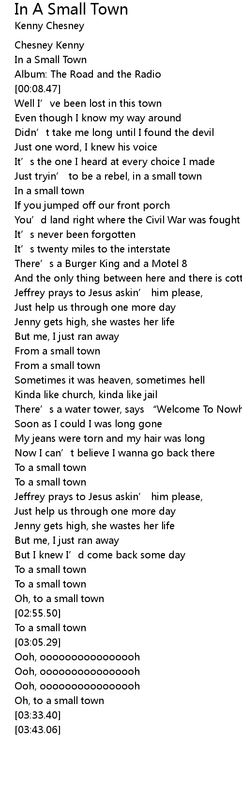 | [00:02.23] | In a Small Town |