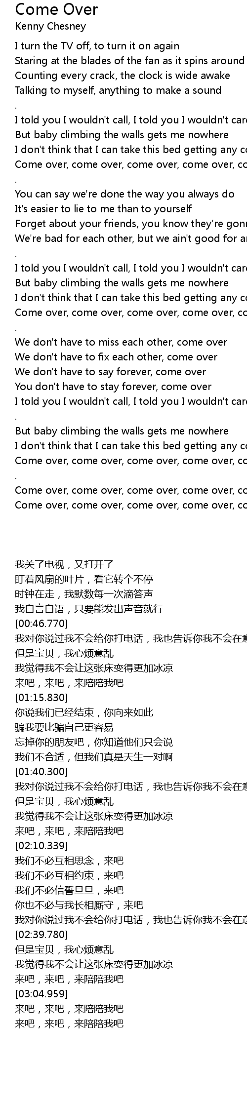 [03:00.399] Come over, come over, come over, come over, come over