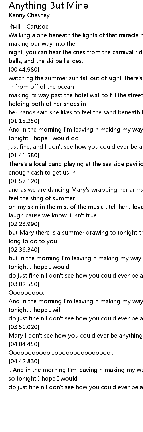 | [05:01.400] | do just fine n I don' t see how you could ever be anything but mine |