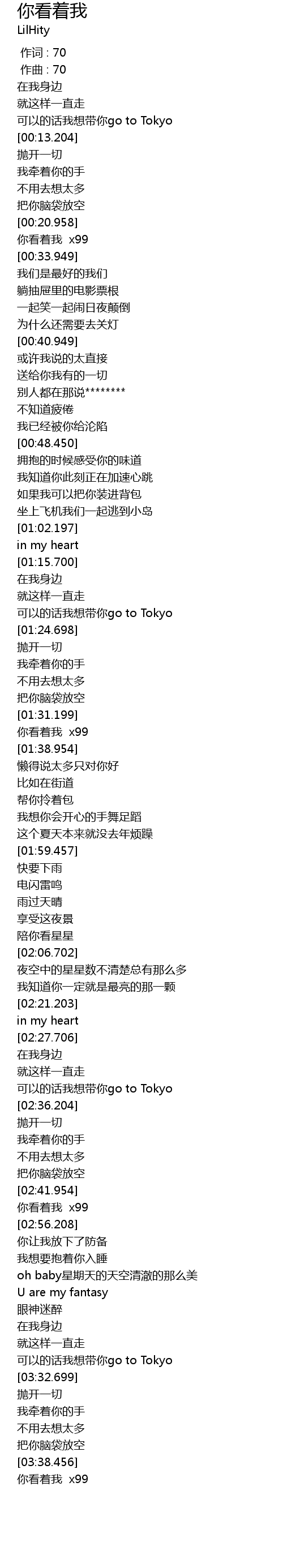 | [03:46.702] | nǐ kàn zhe wǒ x99 |
