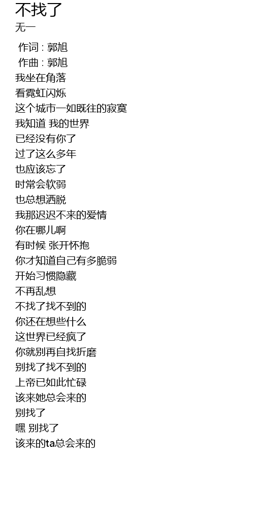| [01:08.178] | 不找了找不到的 |