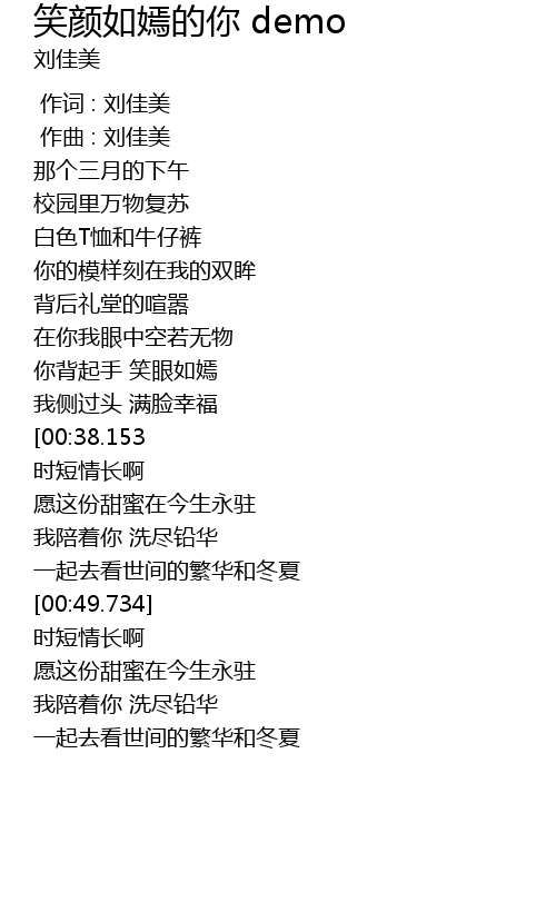 | [00:01.000] | zuò qǔ : liú jiā měi |