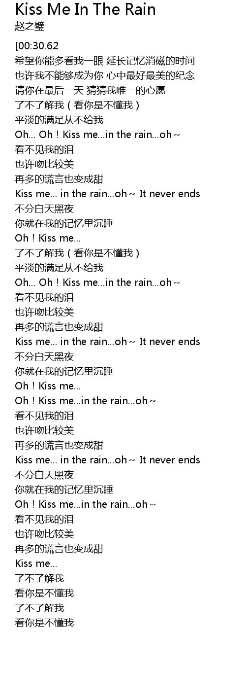 | [02:30.28] | Oh... Oh! Kiss me... in the rain... oh |
