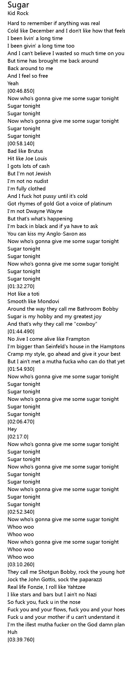 | [01:21.50] | Now who' s gonna give me some sugar tonight |