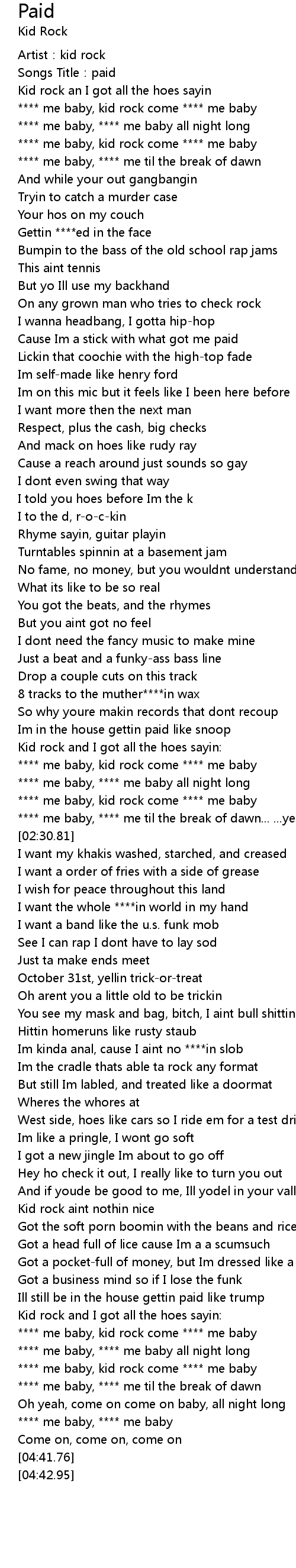 | [04:02.85] | **** me baby, kid rock come **** me baby |