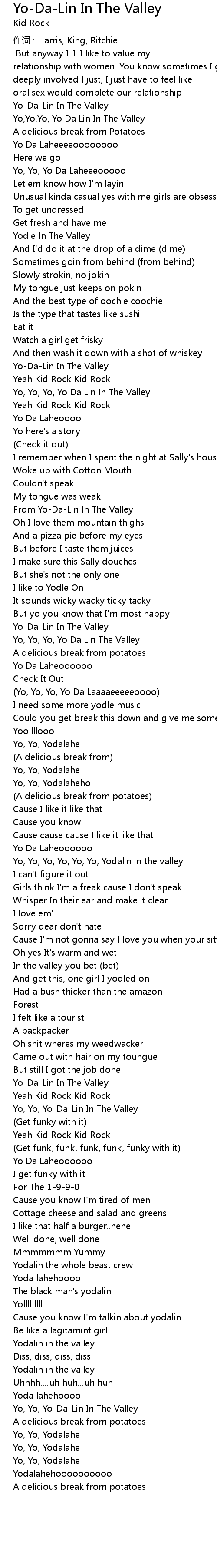 | Yo, Yo, Yo, Yo Da Lin In The Valley | |