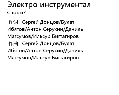 | [00:00.000] | 作曲 : Сергей Донцов/Булат Ибятов/Антон Серухин/Даниль Магсумов/Ильсур Бигтагиров |