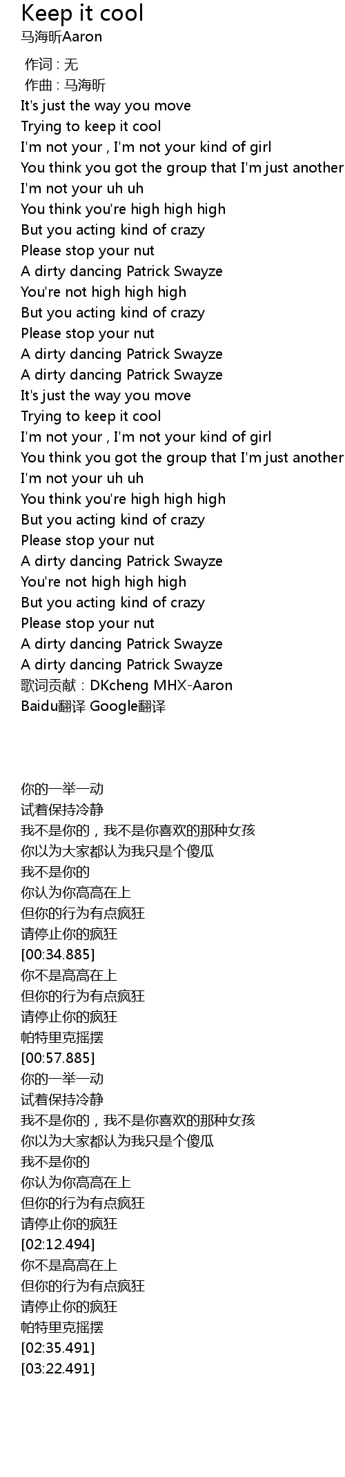 | [03:22.491] | 歌词贡献:DKcheng MHX-Aaron |
