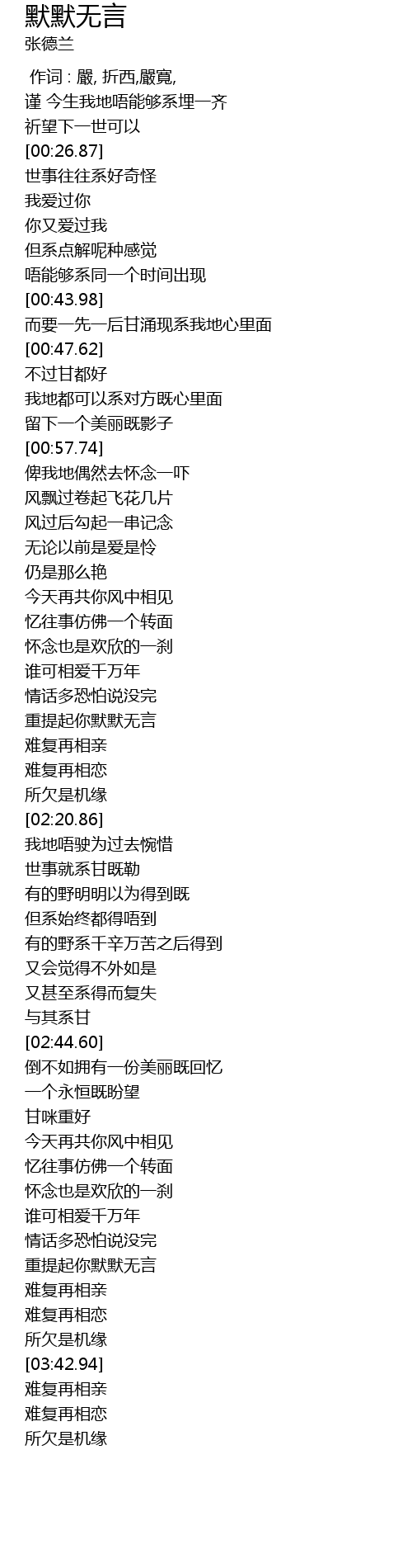 | [03:25.62] | chóng tí qǐ nǐ mò mò wú yán |