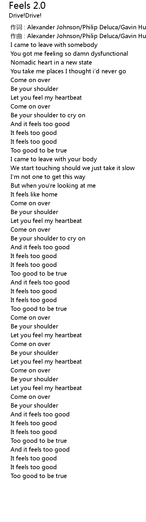 | [03:00.27] | It feels too good |