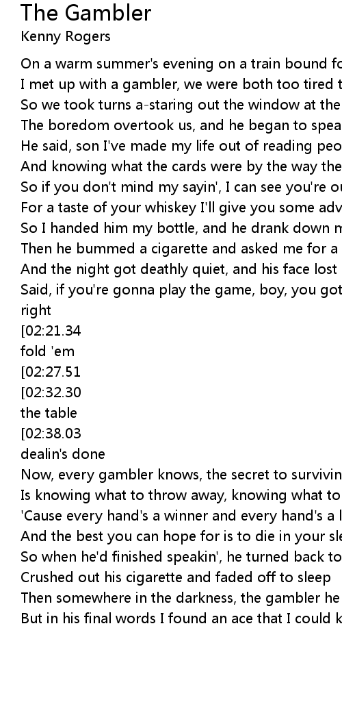 Now, every gambler knows, the secret to survivin' |