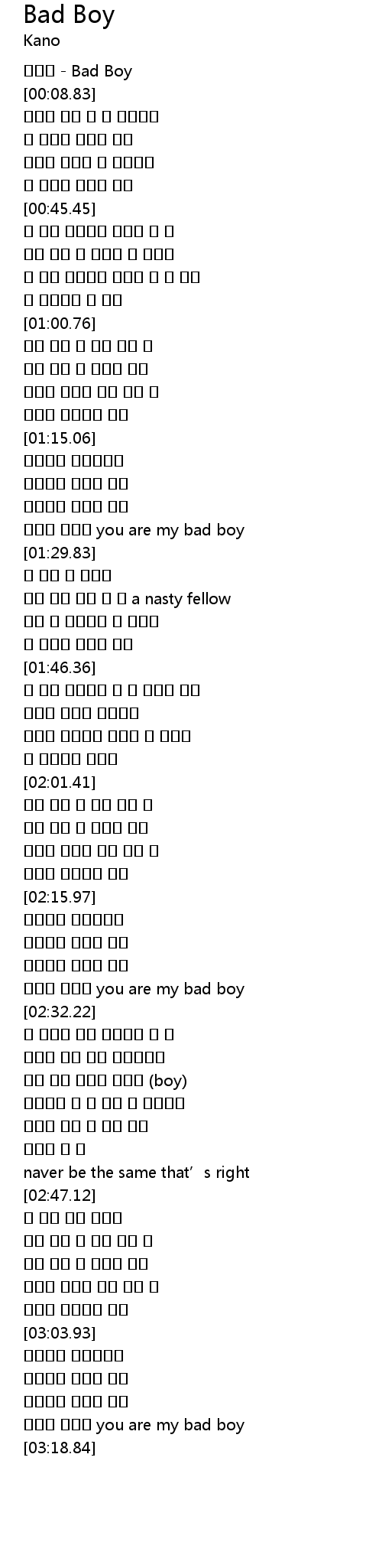 | [03:14.91] | 상처만 남겨준 you are my bad boy |