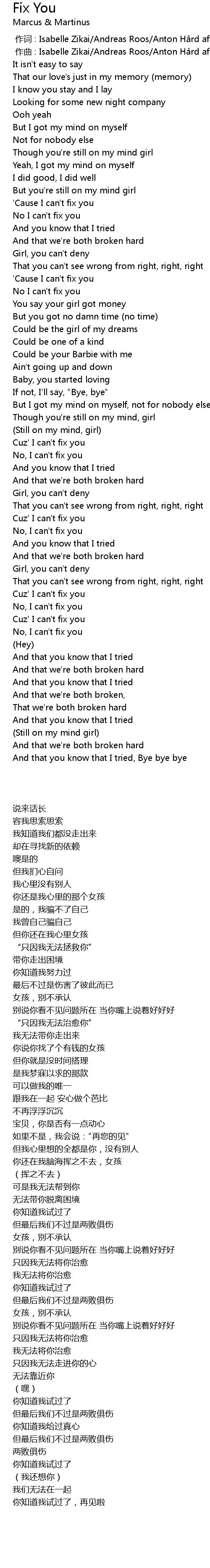 | [00:47.28] | No I can' t fix you |