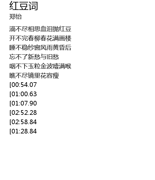 | [00:12.58] | dī bù jìn xiāng sī xuè lèi pāo hóng dòu |