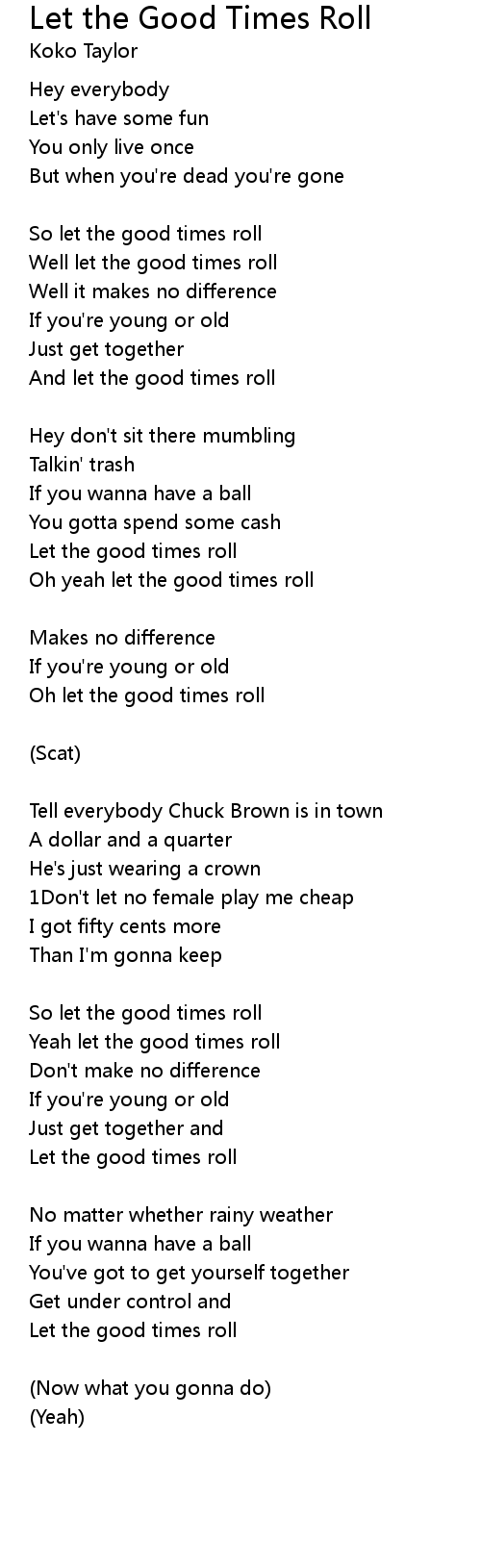 Oh yeah let the good times roll |