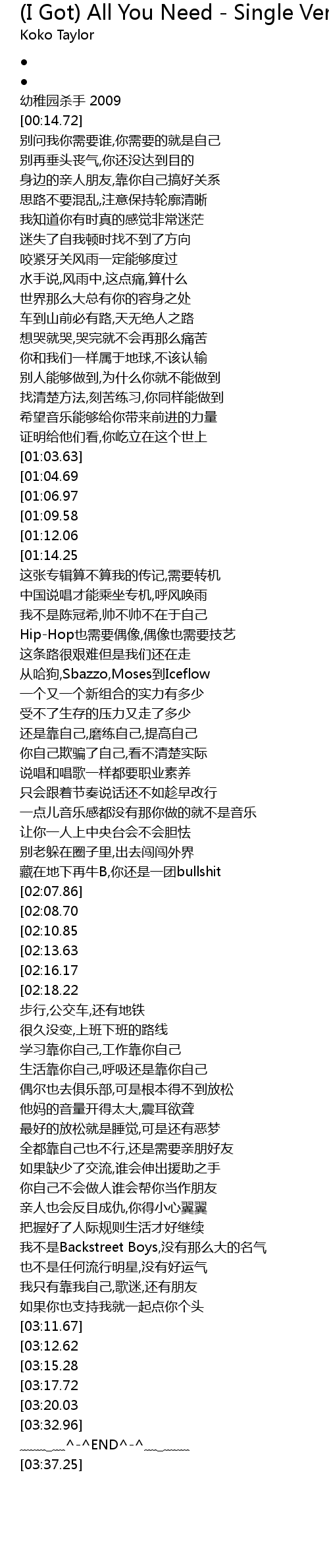 | [03:30.71][03:20.03] | 生活态度就是应该那么那么Hip-Hop |