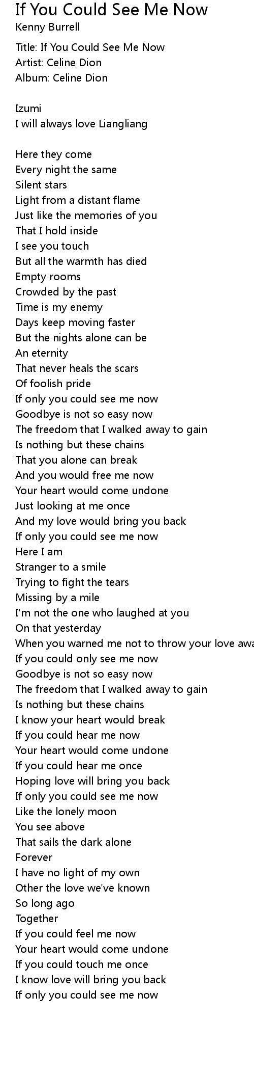 If You Could See Me Now Lyrics