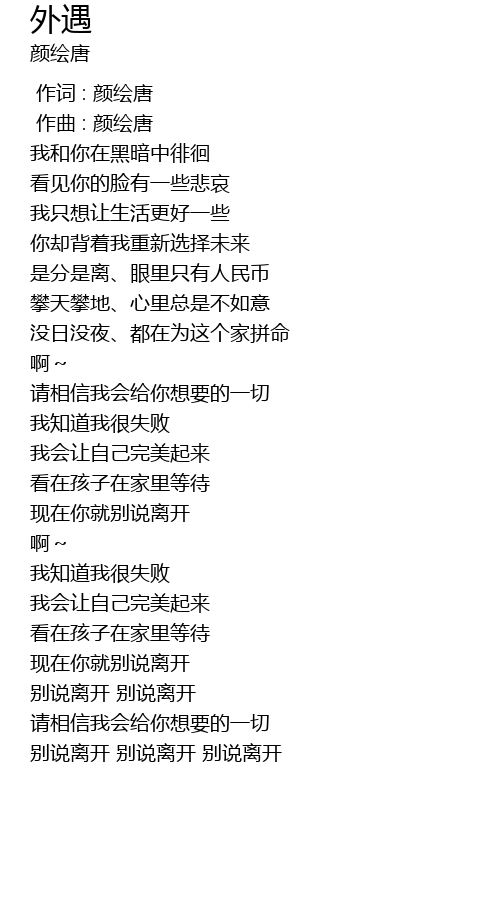 | [01:43.954] | 别说离开 别说离开 别说离开 |