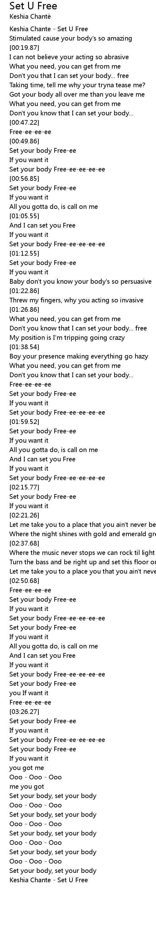 [04:05.72] Keshia Chante - Set U Free