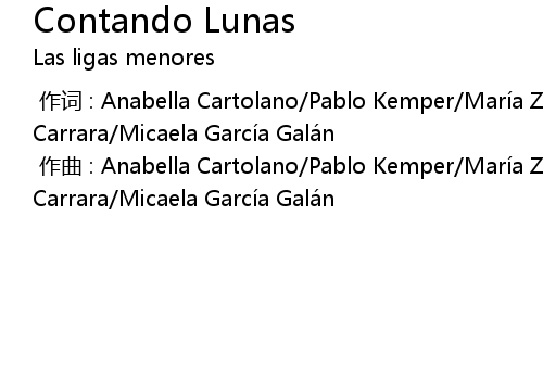 | [00:00.000] | 作曲 : Anabella Cartolano/Pablo Kemper/María Zamtlejfer/Nina Carrara/Micaela García Galán |